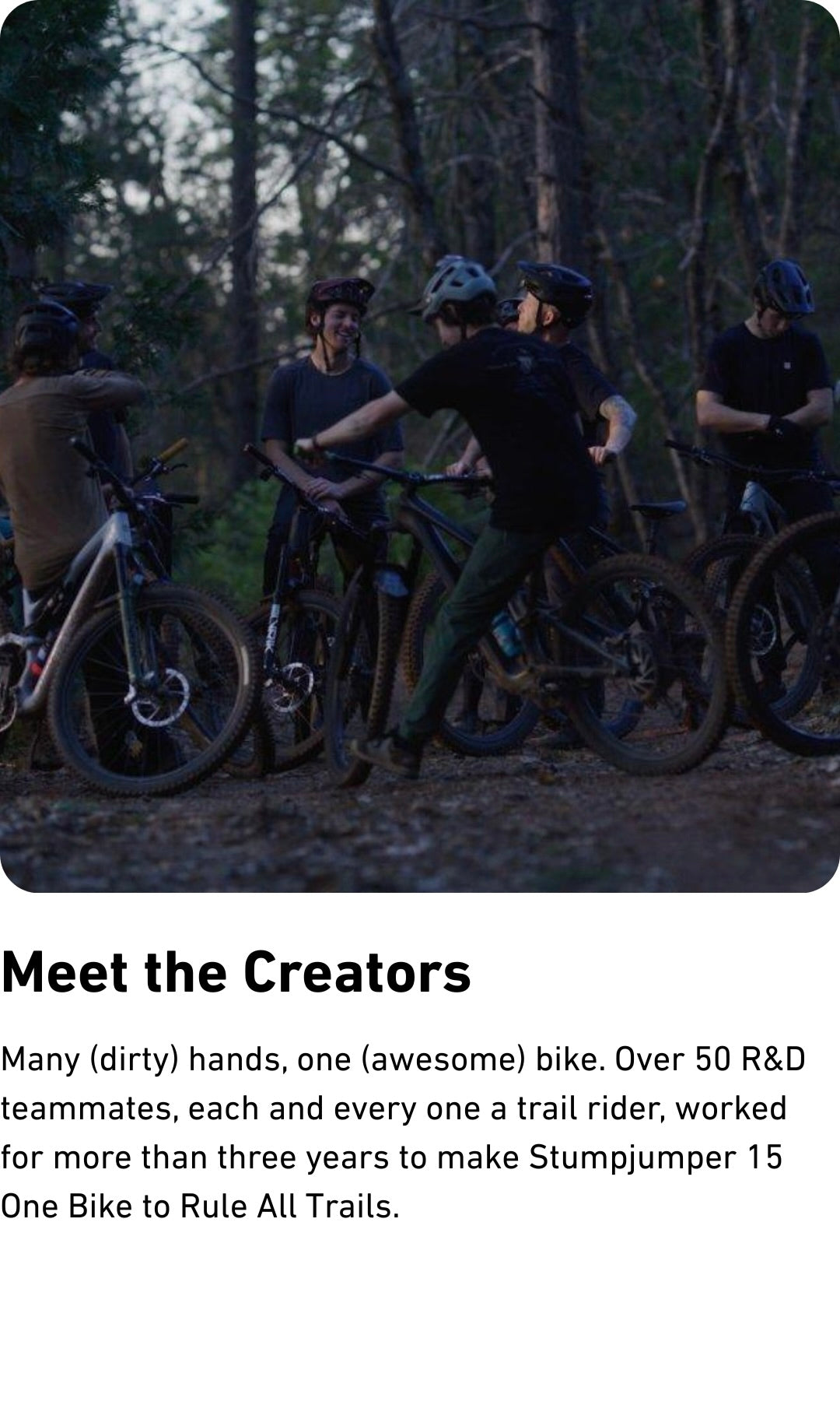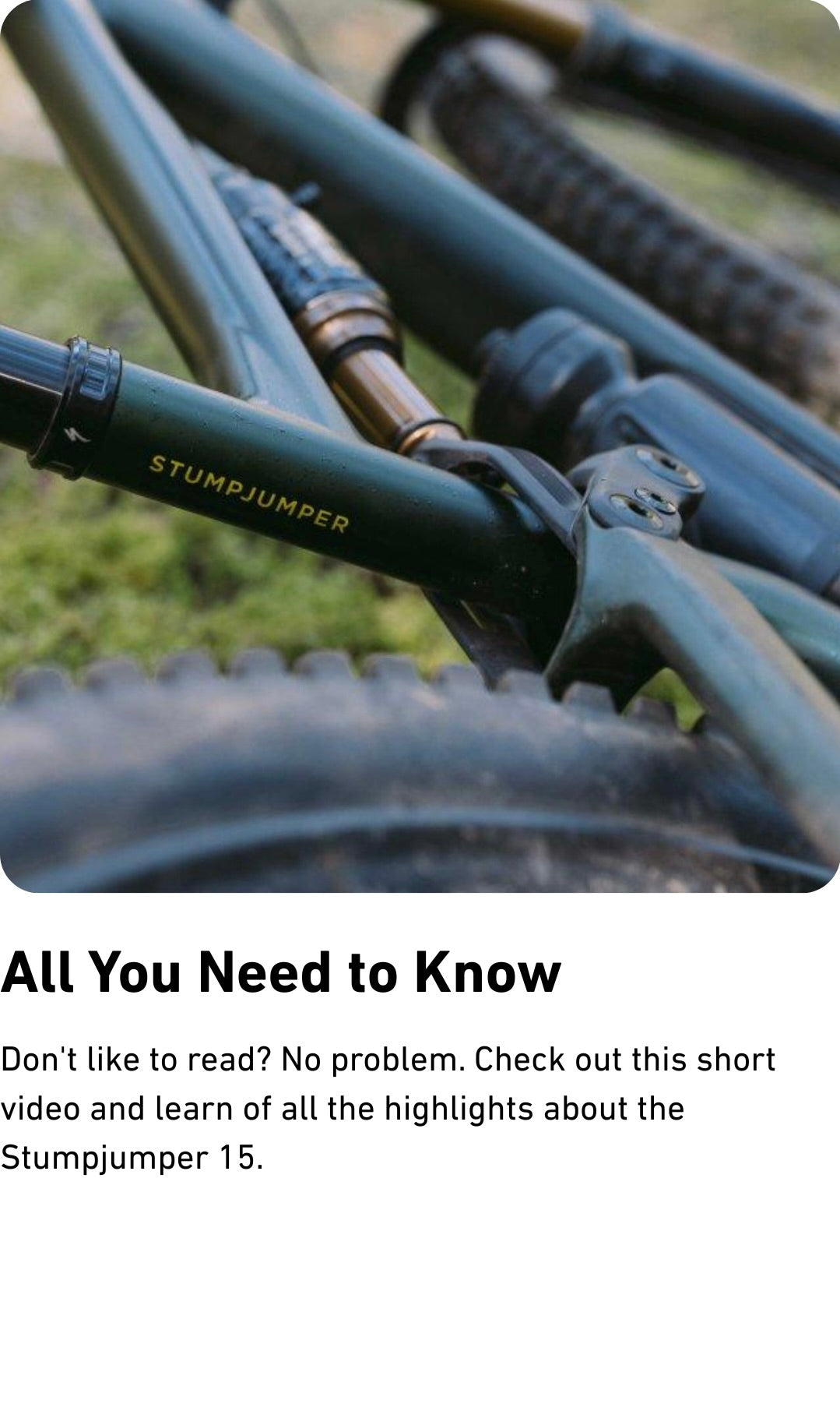 Stumpjumper 15 Alloy is here to obliterate every trade-off in the trail game. Devour bumps like a big bike? Check. Short-travel control, playfulness, and efficiency? Double check. How about a heaping helping of personalization to make it perfect for the only rider who really matters—you? Check, check, check.