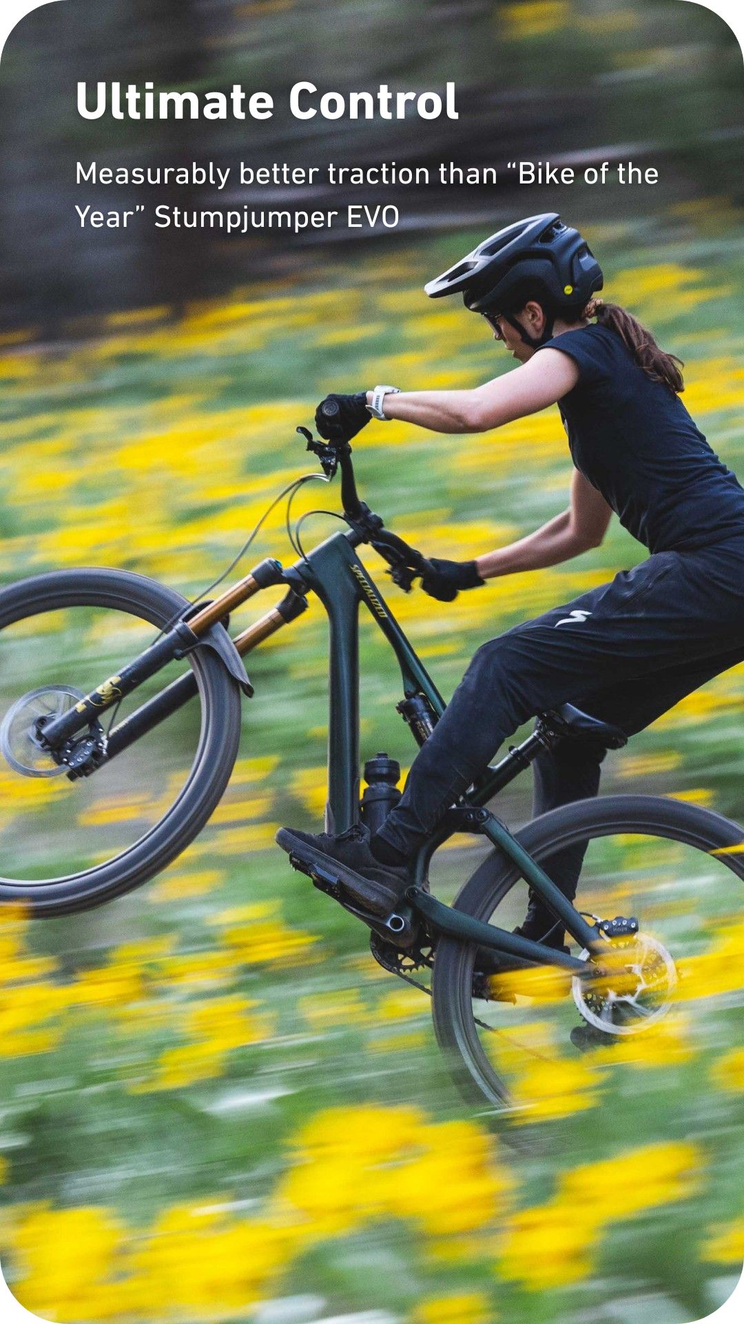 ULTIMATE CONTROL: Measurably better traction than “Bike of the Year” Stumpjumper EVO.