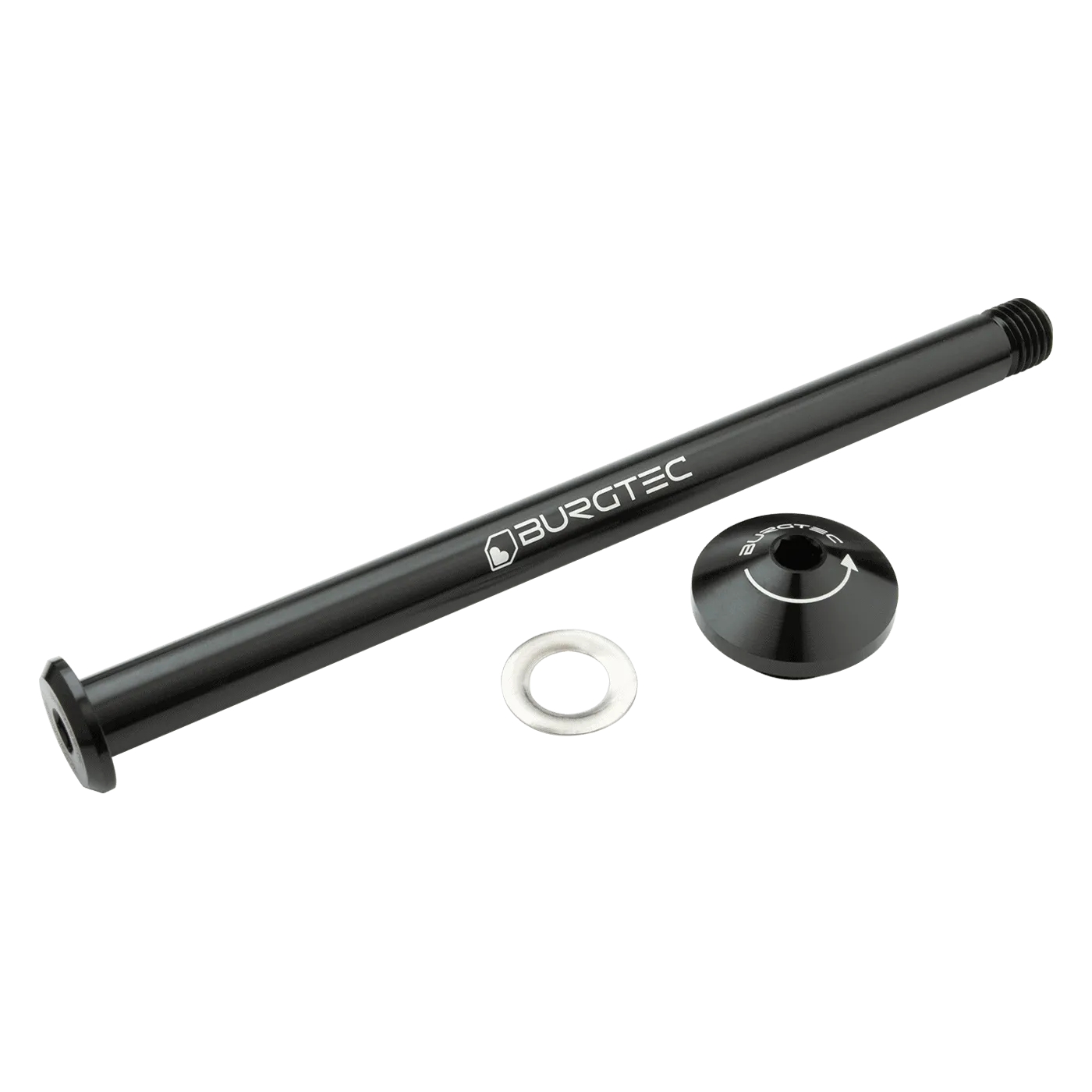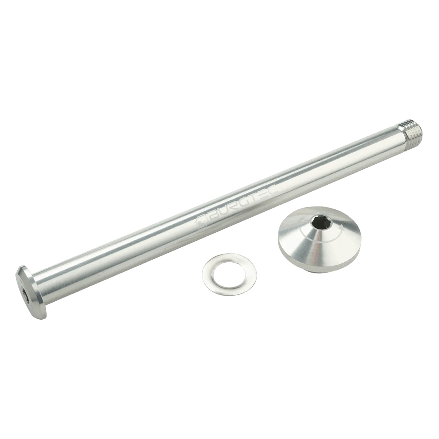 Clean and Simple is always best. Leverless design for added security and clearance for when situations get tight. These super tough axles tighten up with a 6mm Allen key. Dropout Bolt is also provided.