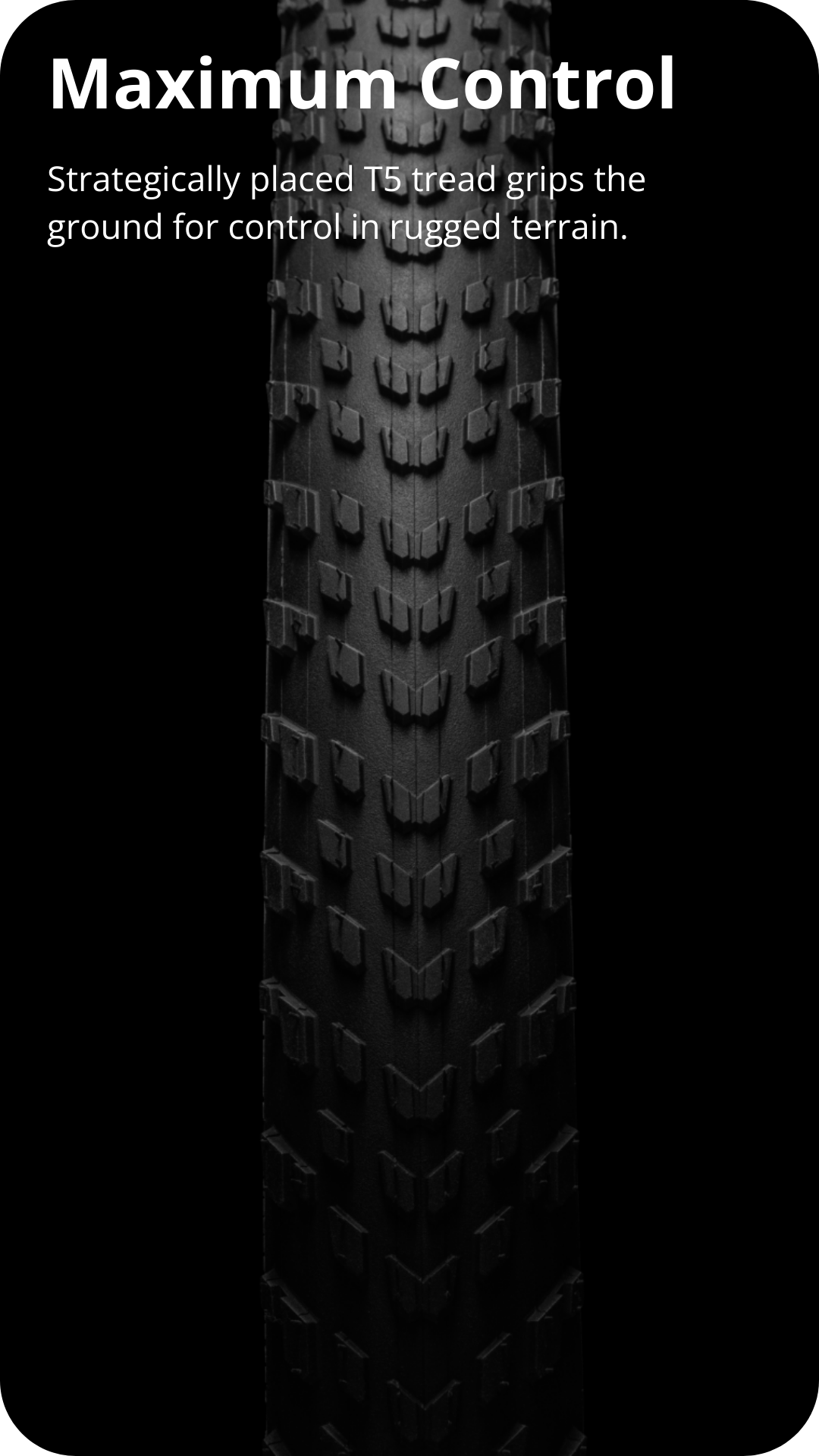 For maximum control on the gnarliest trails, Terra TLR has you covered. Its fast-rolling, compact center tread ensures efficiency and speed, while the wider spaced shoulder knobs provide predictable cornering and handling in the most rugged terrain. Grippy T5 compound balances speed and traction, and our strong, fast rolling TLR casing offers lightning-fast acceleration and top climbing performance while eliminating flats. For the trail less traveled, Terra is the perfect choice.