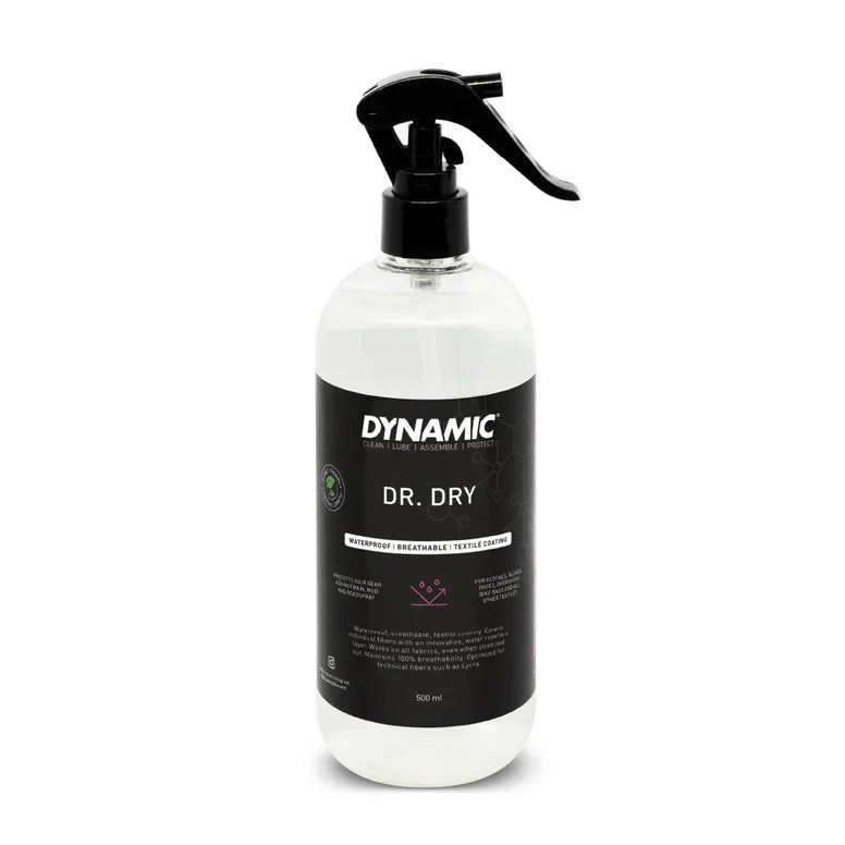 Soaked bib-shorts suck, so does an awesome jacket that is no longer waterproof. Finding your clean clothes all wet in your bikepacking bag wet is not great either. Meet Dr. Dry; a planet friendly spray-on coating that can make any textile waterproof. No more soggy bib-shorts after a rainy ride. No more leaking tents or wet bikepacking bags.