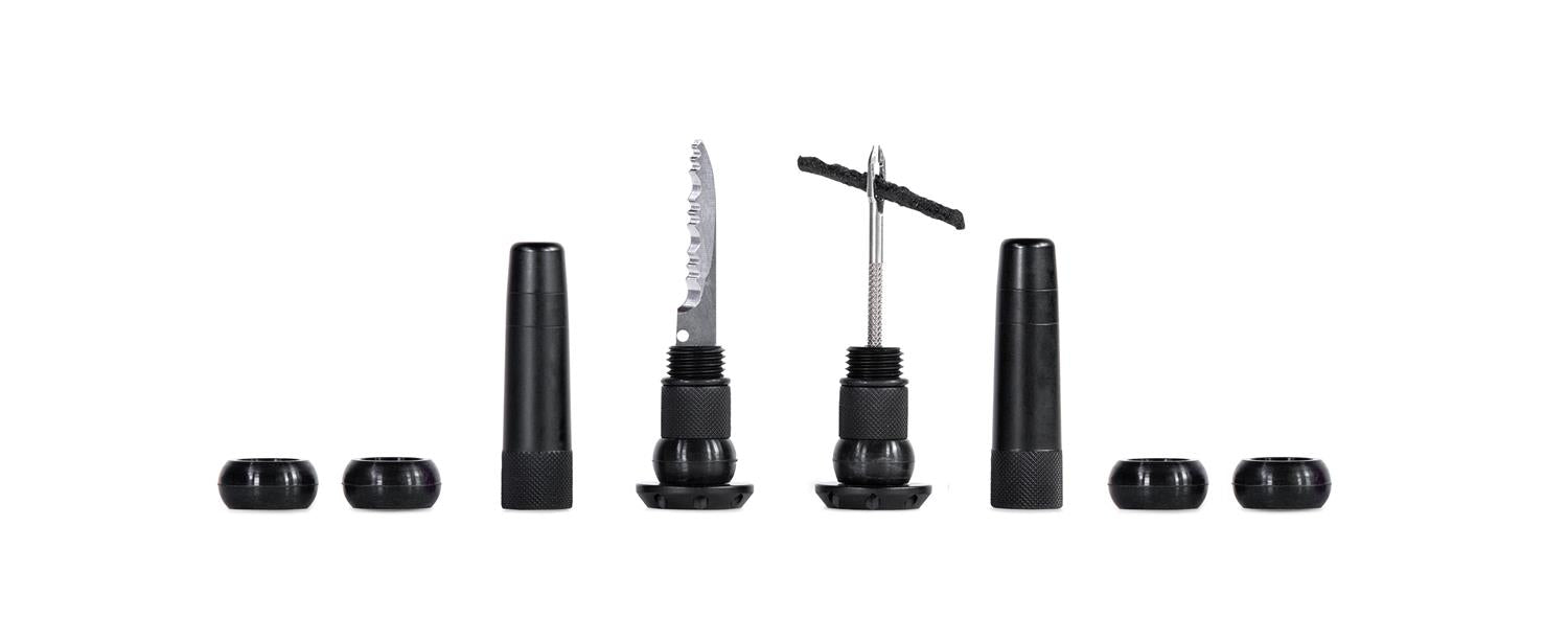 Each lightweight and durable set contains everything you need to get back riding when you’re stuck battling a hole that’s just not sealing: a stainless steel 2-in-1 puncture plug reamer tool, a variety of different sized tyre worms and a trimming knife.