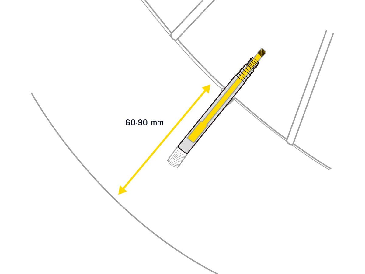 For 60-90 mm deep section rims Precision machined from aircraft grade aluminum, this extra long presta valve extender fits deep-dish and carbon rims from 60mm-90mm. O-ring seal ensures a leak-free fit.