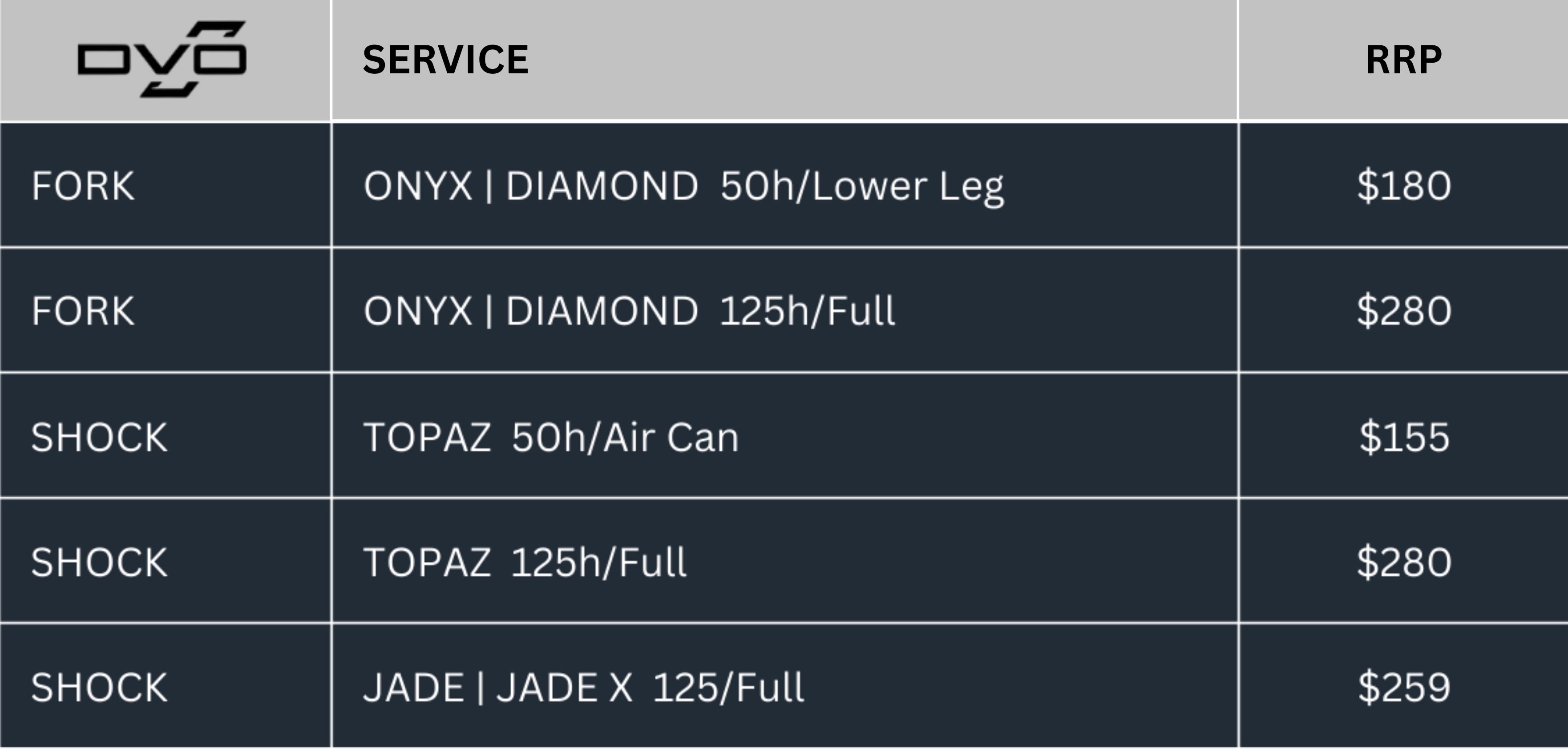 DVO SERVICE PRICING